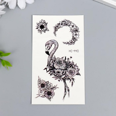 Татуировка на тело чёрная "Фламинго и цветы" 10,5х6 см 6302332 Подробнее