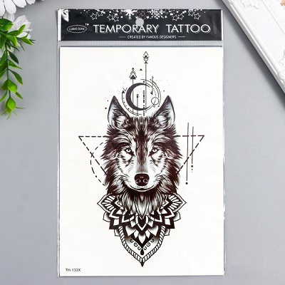 Татуировка на тело чёрная "Волк и символы" 21х15 см 7040518 Подробнее