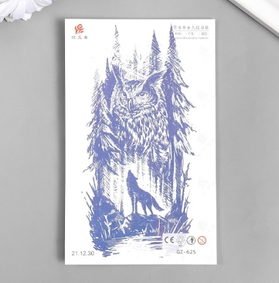 Татуировка на тело синяя "Филин и волк" 18х11 см 7882500 Подробнее