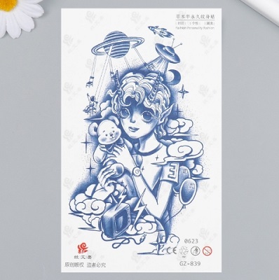 Татуировка на тело синяя "Космический мальчик" 18х11 см 9884289