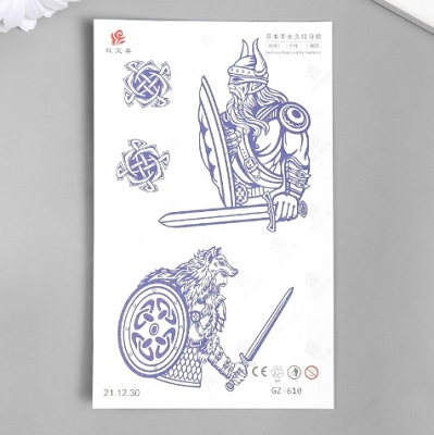 Татуировка на тело синяя "Викинги" 18х11 см 7882504