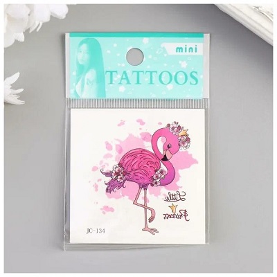 Татуировка на тело цветная "Фламинго с цветами" 6х6 см 5074838 Подробнее