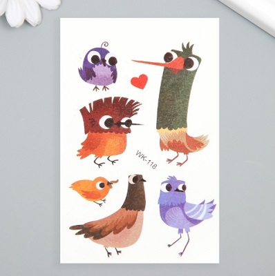 Татуировка на тело цветная "Смешные птички" 7,5х11 см 9690998