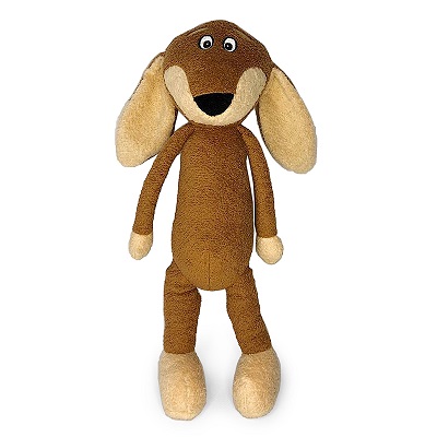 Вытянутое тело позволяет очень удобно держать коричневую таксу с длинными ушками детской ручкой. Сжимая собачку из мягких и экологичных материалов, малыш сможет выгуливать её, почти как настоящую, разминая её туловище и заодно — свои ножки. А можно подарить забавное животное из серии MAXITOYS Slim другу или знакомому, которому наверняка понравятся её цвет, форма и смешные невинные глазки с бровями. Высота игрушки: 33 см.