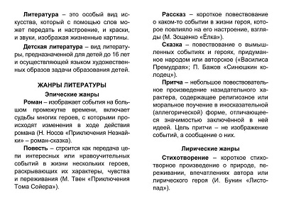 В пособии представлено обобщенное изложение теоретического материала по литературному чтению для 1-4 классов в виде справочного материала и литературоведческих понятий, направленное на достижение предметных и метапредметных образовательных результатов в соответствии с ФГОС. Развернутая подача материала привлечет внимание современного школьника, вызовет его интерес, поможет сделать процесс усвоения знаний не только простым, но и эффективным. Сборник может быть использован как в учебном процессе, так и для самостоятельного изучения и повторения школьной программы по литературному чтению, полезен школьникам при подготовке к контрольным и проверочным работам, выполнении домашних заданий. Предназначено обучающимся 1-4 классов, педагогам общеобразовательных организаций, родителям школьников, заинтересованным в успешном освоении детьми литературного чтения.