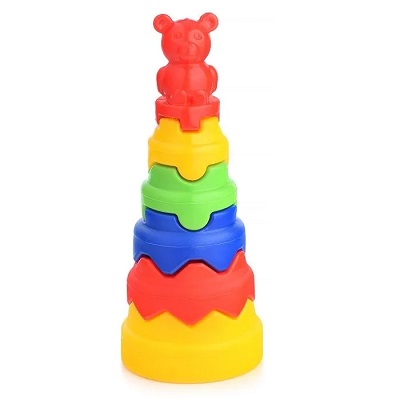 Игрушка сделана из полимерных материалов и не содержит экологически вредных веществ, поэтому является абсолютно безопасными для здоровья детей. Перед игрой их достаточно помыть в мыльном растворе. Пирамидка может стать первым конструктором малыша. Детали мягкие и легкие (полые внутри), углы скруглены.