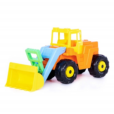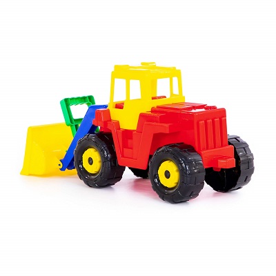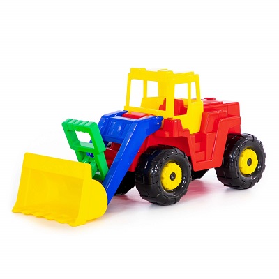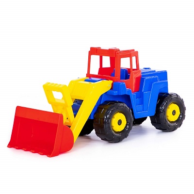 Большой детский трактор-погрузчик для игры в песке. У погрузчика есть ковш с ручным управлением для загрузки песка в самосвалы, а так же для выравнивания песочных дорог. В открытую кабину погрузчика можно поместить человечка. Трактор имеет надежное крепление колес на металлических стержнях и крепкую пластмассу высочайшего качества, санитарно и гигиенически безопасную для детей.