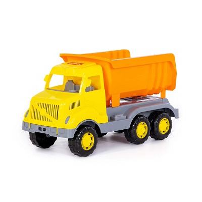 Автомобиль-самосвал "Богатырь" отлично подойдёт для игры как дома, так и на улице. В кузове карьерного типа удобно возить, насыпать и ссыпать песок.