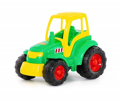Если ребёнок подолгу играет с различными фигурками животных, представляя себя в роли хозяина фермы, то можно сделать игру намного разнообразнее и реалистичнее. Ведь какое подсобное хозяйство может обойтись без трактора, поэтому подарив крохе это яркое транспортное средство, Вы даете ему возможность полностью ощутить атмосферу фермы и имитировать процесс езды по своим владениям, не беспокоясь, что застрянет, ведь у игрушки устойчивые широкие колеса.
