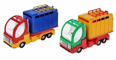 Игрушка создана из пластика высокого качества, безопасного для малышей. Ребенок может играть в свое удовольствие, помещая что-либо в фургон и перевозя.