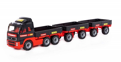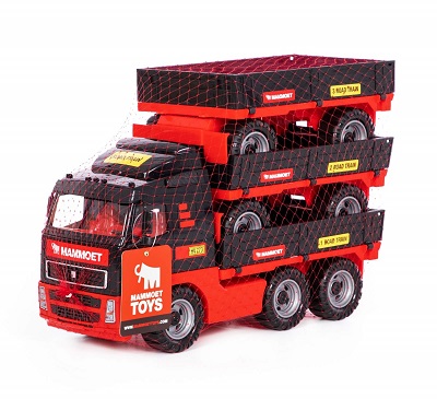 Крупнейшая в СНГ фабрика по производству игрушек «Полесье» совместно с компанией «МАММОЕТ», специализирующейся на тяжёлых подъёмных работах и транспортировке тяжёлых грузов по воде и суше, наладила выпуск лицензионной серии эксклюзивных игрушек. Дизайн игрушек разработан в соответствии с фирменными цветами компании «МАММОЕТ», что позволяет игрушке выглядеть более реалистично. Автомобиль бортовой с двумя прицепами от компании «Полесье» создан по подобию оригинального большегруза. Игрушка выполнена из качественного и надежного пластика. Автомобиль оснащён бортами, которые снимаются, таким образом, можно перевозить более габаритные грузы. Играть автомобилем удобно как в помещении, так и на свежем воздухе.