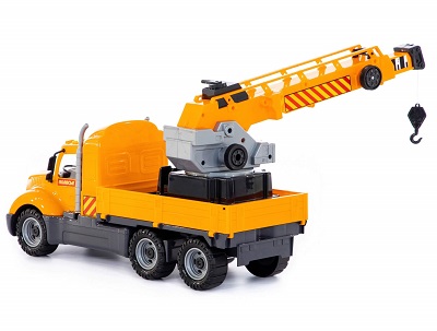 Автомобиль-кран из серии «Майк» имеет стильный дизайн и выглядит как настоящий грузовик. Кран на поворотной платформе позволит развернуть настоящую строительную площадку. Выдвижная стрела позволит доставить грузы на верхние этажи. Игрушка выполнена из долговечного и безопасного материала. Крупные колёса обеспечивают хорошую проходимость на различных поверхностях. Продуманную эргономику оценят не только дети, но и их родители.