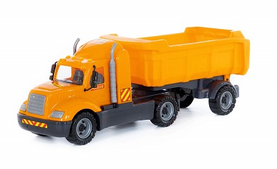 Автомобиль-самосвал с полуприцепом из серии «Майк» станет прекрасным дополнением автомобильного мира мальчишек. Игрушка выполнена из долговечного и безопасного материала. Стильный дизайн добавляет реалистичности в играх дома и на свежем воздухе. Вместительный кузов позволяет загрузить большое количество других игрушек и деталей. Крупные колёса обеспечивают хорошую проходимость на различных поверхностях. Продуманную эргономику оценят не только дети, но и их родители.
