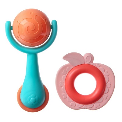 Форма ручки и размеры разработаны специально для детской ладони, поэтому малышу будет удобно её держать. Рельефная структура на поверхности изделия и его дополнительных элементов будет способствовать развитию мелкой моторики, а яркие цвета — формированию визуального восприятия мира.