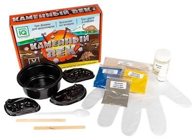 С помощью набора ребенок сможет воссоздать каменные барельефы и объемные модели доисторических животных и ископаемых. Эксперимент интереснее, чем кажется! Все потому, что специальную пластичную массу, которую в итоге нужно будет использовать для лепки, ребенок будет делать самостоятельно. После того, как все приготовления будут завершены, с помощью специальных формочек из набора создайте фигурки, которые высохнут на воздухе в течение 10-12 часов и станут твердыми и прочными. Состав: полимерный раствор, глицерин, смесь для барельефов, цветная смесь для барельефов (3 цвета), формочки для барельефов (3 шт.), мисочка для смешивания, деревянные палочки, перчатки, ложка. Для детей старше 8-ми лет.