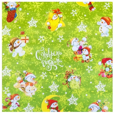 Бумага упаковочная новогодняя глянцевая "Снеговики", 70 х 100 см.