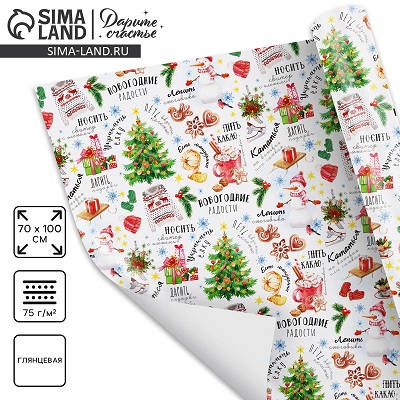 Упаковочная бумага «Новогодние радости», 70×100 см, глянцевая
