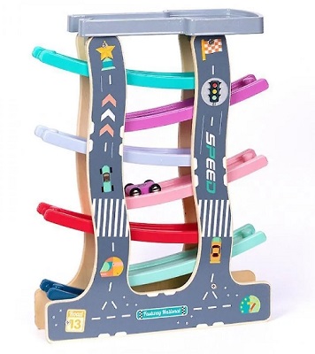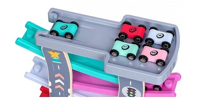 Размер 15,7 x 2,8 x 11,8 дюйма, вес около 3 фунтов, включая 6 пандусов, 1 парковку и 8 мини-автомобилей. Эта игрушка для гонок для малышей компактна и прочна, ее можно легко хранить на стеллаже. или в маленькой комнате.