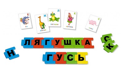 Развивающая настольная игра для детей старше 3 лет от компании Стеллар. Ребенку предстоит выложить из букв слова, которые написаны на карточках. Также буквы различаются по цветам: гласные – обозначены красным цветом, согласные звонкие – синим, согласные глухие – зеленым.