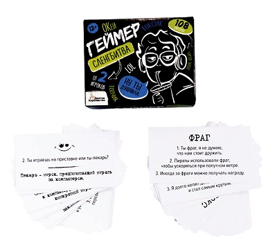 С настольной игрой для большой компании «Сленгбитва. Окей Геймер» вы проверите уровень знания сленга геймеров. Игрокам нужно отвечать на вопросы: что такое "лока" и "спелл"? и кто такие "нуб" и "багоюзер"? Победит тот, кто даст больше правильных ответов!
