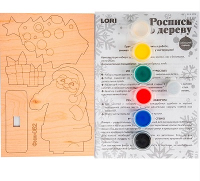 Комплектация: деревянная зоготовка, краски, лак с блёстками, инструкция.