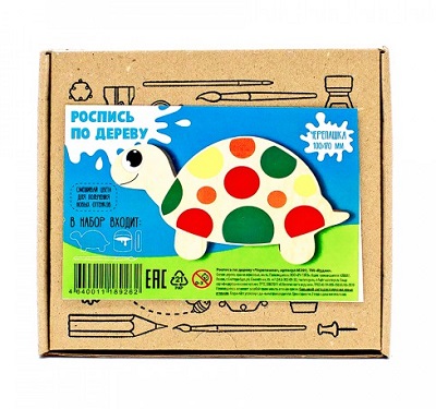 Набор для росписи по дереву. В набор входят: деревянная фигурка Черепаха, 1 подставка, густые акриловые краски по 4мл, кисть.