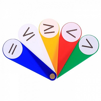 Веер с арифметическими знаками для изучения действий - сложение, вычитание, умножение и деление. Также можно приобрести веера с буквами русского и английского алфавитов, цифровой веер и веера с грамматическими знаками.
