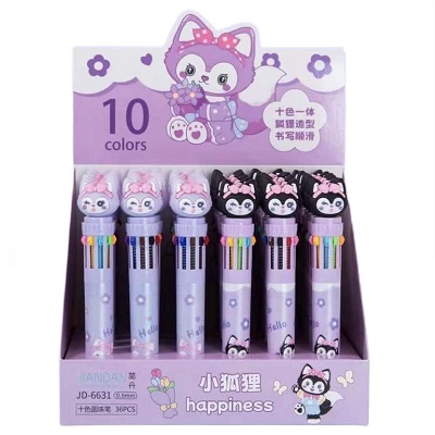 Ручка шариковая автоматическая, пластиковый яркий корпус, 10 цветов чернил. Толщина линии - 0,7 мм.