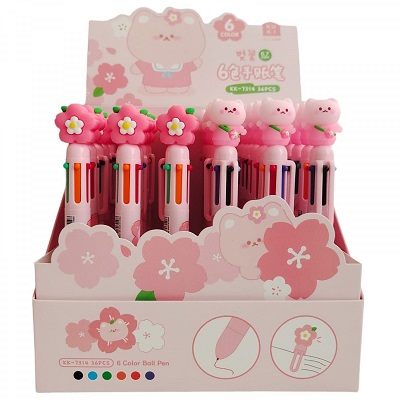 Ручка шариковая автоматическая 6-ти цветная, толщина линии-0,7мм, картонный дисплей