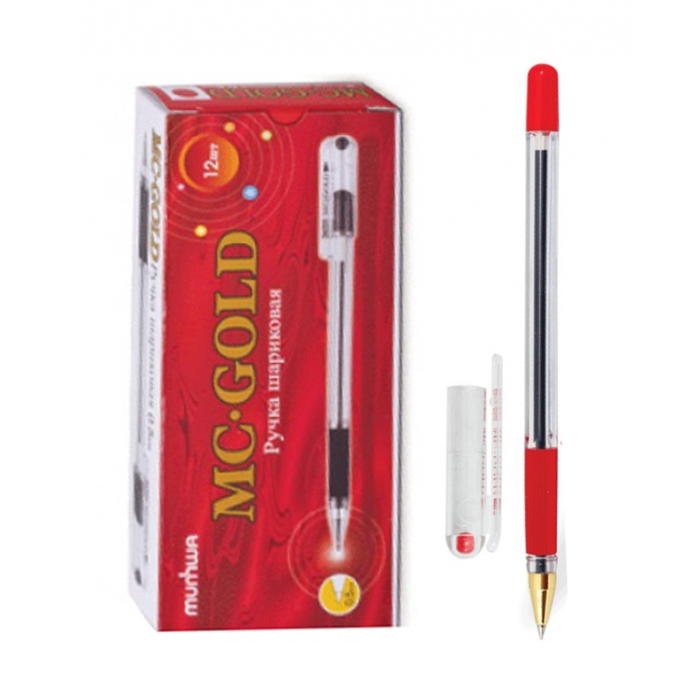 Ручка шариковая "MC Gold", красная, 0,5мм, грип, штрих-код