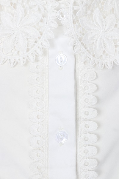 Лёгкая однотонная рубашка на девочку с короткими рукавами выполнена из полиэстера. Прямой крой обеспечивает комфортную посадку. Изделие с манжетами на пуговицах и отложным ажурным воротником. Застёгивается спереди на пуговицы. Не сковывает движения. Лёгкая ткань. Размер 34-42.