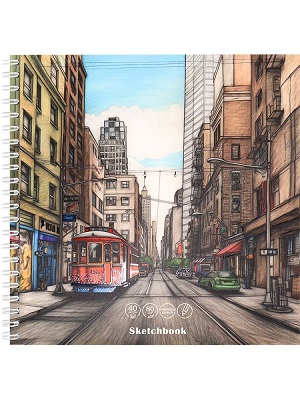 Скетчбук 40л. ГОРОДСКОЙ ПРОСПЕКТ (40-0312) греб. сбоку,обл. мел. кар, бл-крафт, мат.л,выб.л, 190х190