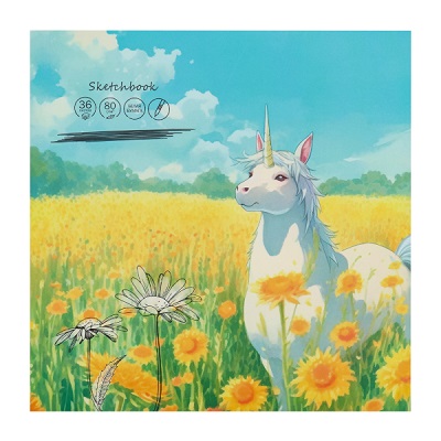 Скетчбук для маркеров, 215х215, 36л, ЕДИНОРОГ В ПОЛЕ (36-0105) 80гм2, КБС, обл. мат.ламин