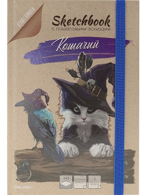 Скетчбук с пошаговыми эскизами КОШАЧИЙ(РТ-5194)7БЦ,КБС с рез80л бл-краф бум,крафт,в.л