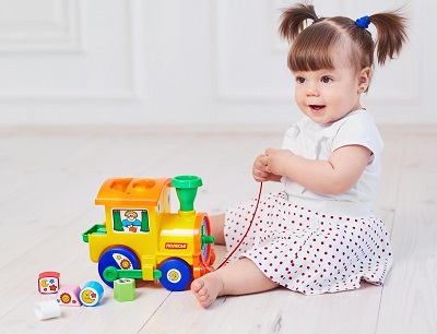 Занимательный паровоз выполняет несколько функций. Игрушка выступает в роли сортера и каталки на шнурке. Сортер знакомит ребёнка с цветом и формой, а также тренирует мелкую моторику рук. В ходе игры малышу необходимо подобрать к каждой фигурке отверстие той же формы, это развивает логическое мышление. Использование игрушки в качестве каталки позволяет ребёнку постичь пространственные свойства предметов.