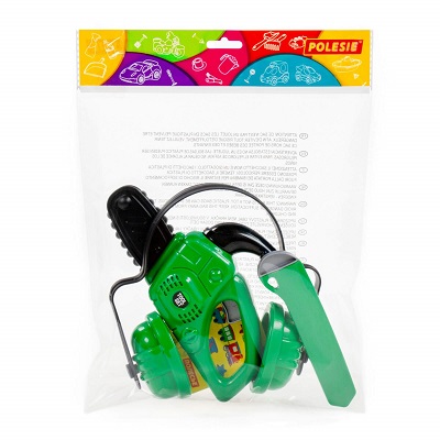 Наборы инструментов, производимые компанией «Полесье», могут использоваться как для проведения групповых занятий в дошкольных учреждениях, так и для самостоятельной игры ребёнка. Все инструменты, входящие набор, функционально идентичны взрослым аналогам и позволяют развивать мелкую моторику, координацию ребенка, точность движений. Набор инструментов помогает познакомить детей с основными особенностями взаимодействия отдельных частей и деталей, развивает пространственное воображение. В комплект входит: бензопила (1 шт.), строительные наушники (1 шт.), нож строительный (1 шт.)