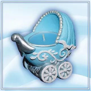подсвечник со свечой "коляска" голубой арома Подробнее