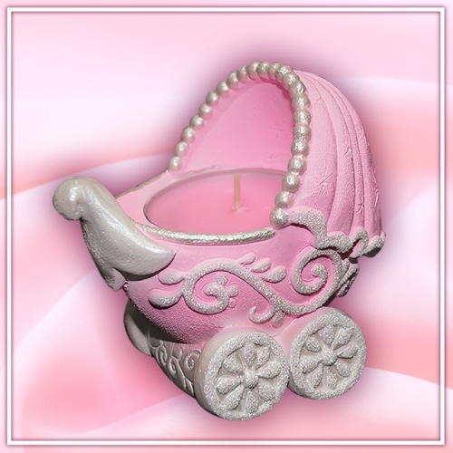 подсвечник со свечой "коляска" розовый арома Подробнее