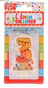 Свеча в торт цифра 3 "С днем рождения" Подробнее