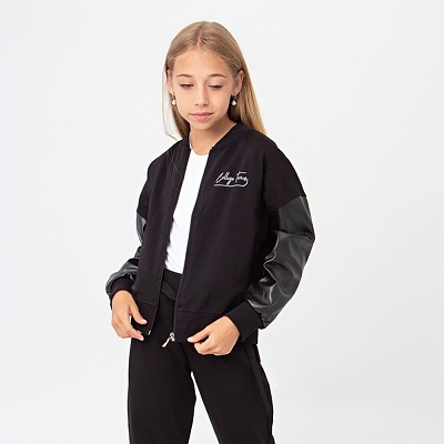 Бомбер для девочек (экокожа) (черный) Подробнее
