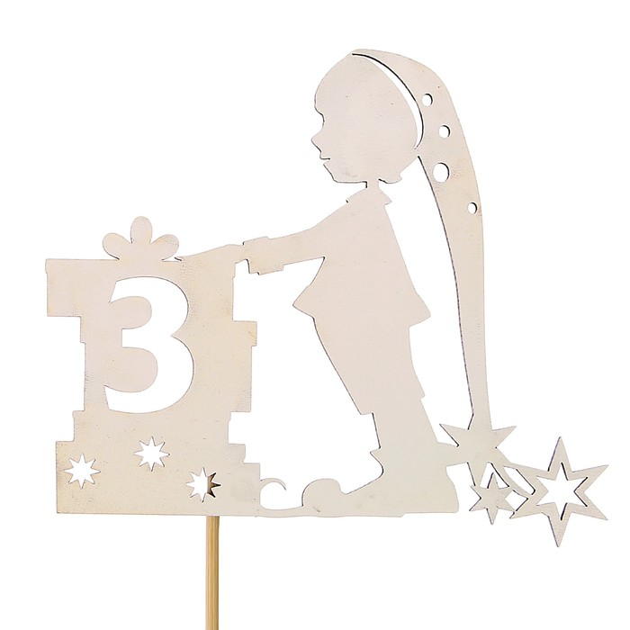 Топпер детский цифра "3" гномик с подарками 3265144 Подробнее