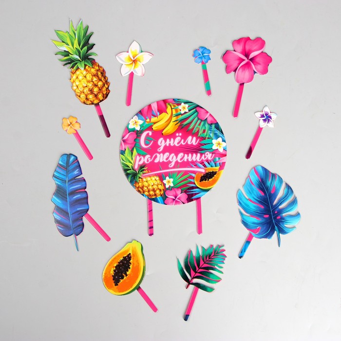Украшение для торта "С днём рождения" тропики 7822916 Подробнее