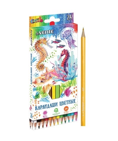 Карандаши цветные "deVENTE. Cosmo" 24 цвета, 2М, диаметр грифеля 2,8 мм, шестигранные, в картонной коробке.