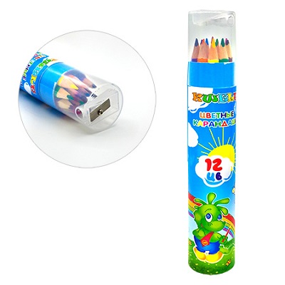 Карандаши " KWELT " 12цв трехгранные, деревянные, туба, точилка в крышке Подробнее