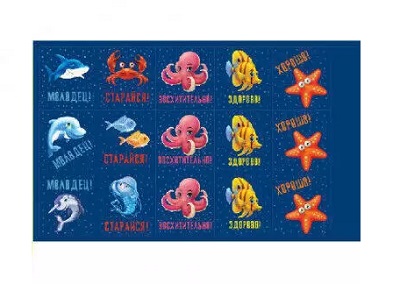 Наклейка-оценка "Морские обитатели", формат А6.
