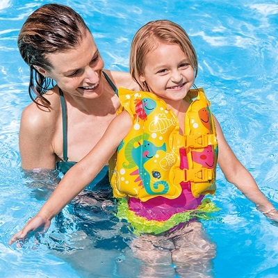 Жилет для плавания «тропические джунгли» предназначен для детей в возрасте от 3 до 5 лет.
