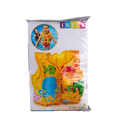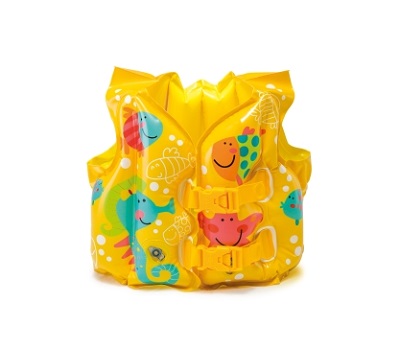 Плавательный жилет для ребенка – одна из необходимых вещей, которая поможет ему научиться быстро плавать. Он поможет ребенку уверенно держаться на плаву, не сковывая руки и ноги. Жилет выполнен из специального прочного винила, имеет 3 воздушные камеры – одни из них является воротником, и надежные застежки, удерживающие жилет на ребенке. Цветовое оформление жилета представлено в раскраске «Тропические друзья».