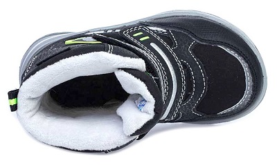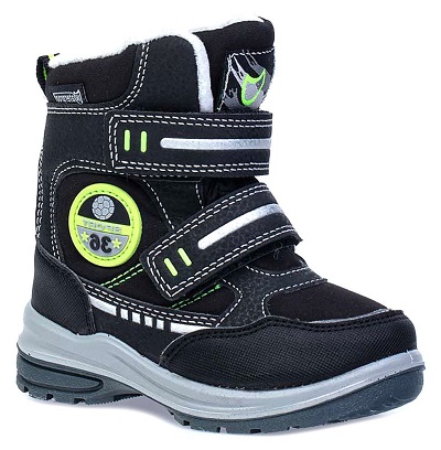 Ботинки из комбинированных материалов верха с использованием мембранной технологии позволят ножкам оставаться сухими в сырую погоду. Контрастная расцветка, усиление носочной и пяточной частей – все, для большего удобства и красоты. Подкладка - утеплённая, из шерстяного меха. Язычок ботинка вшит по бокам практически до самого верха, тем самым предотвращая попадание снега и воды внутрь. На ноге модель фиксируется с помощью 2-ух липучек, что придаёт ей максимальную раскрываемость и идеально подходит для ножек с высоким подъёмом. Особенно хороши для активных прогулок. Для снижения веса и улучшенных амортизационных свойств подошва изготовлена из комбинации резины и ПУ (пенополиуретан). Размер 23-26.